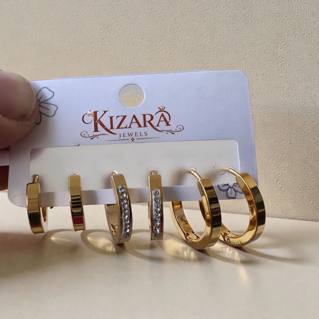 Orchestrate opulent outfits with the Kizara 6-Piece Gold Hoop Earrings Set—a symphony of six: dainty studs, pavé open hoops, slim cuffs, petite huggies, all envisioned from our epochal anti-tarnish stainless steel in effulgent gold for endless ensembles.