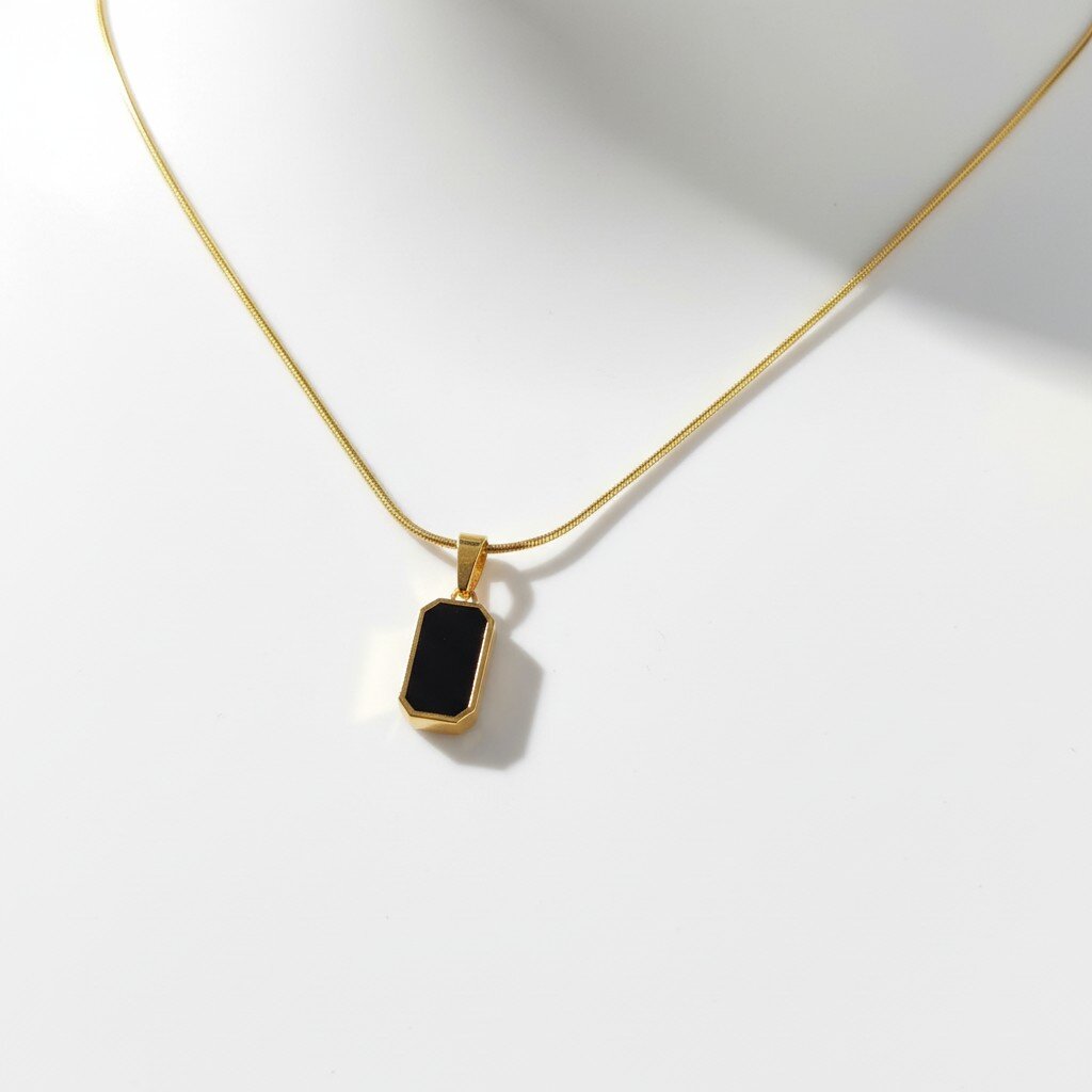 Be the first to review “Minimalist Gold Black Onyx Bar Pendant Necklace – Sleek Rectangle Gemstone Women’s Chain” Cancel reply